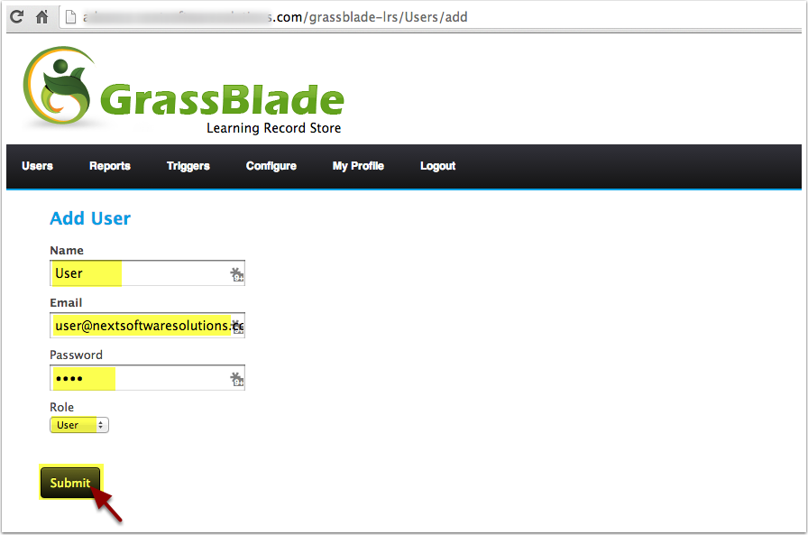 Create a new user by going to Users > Add New. Enter the details and select the Role “user”. Click Submit to save.