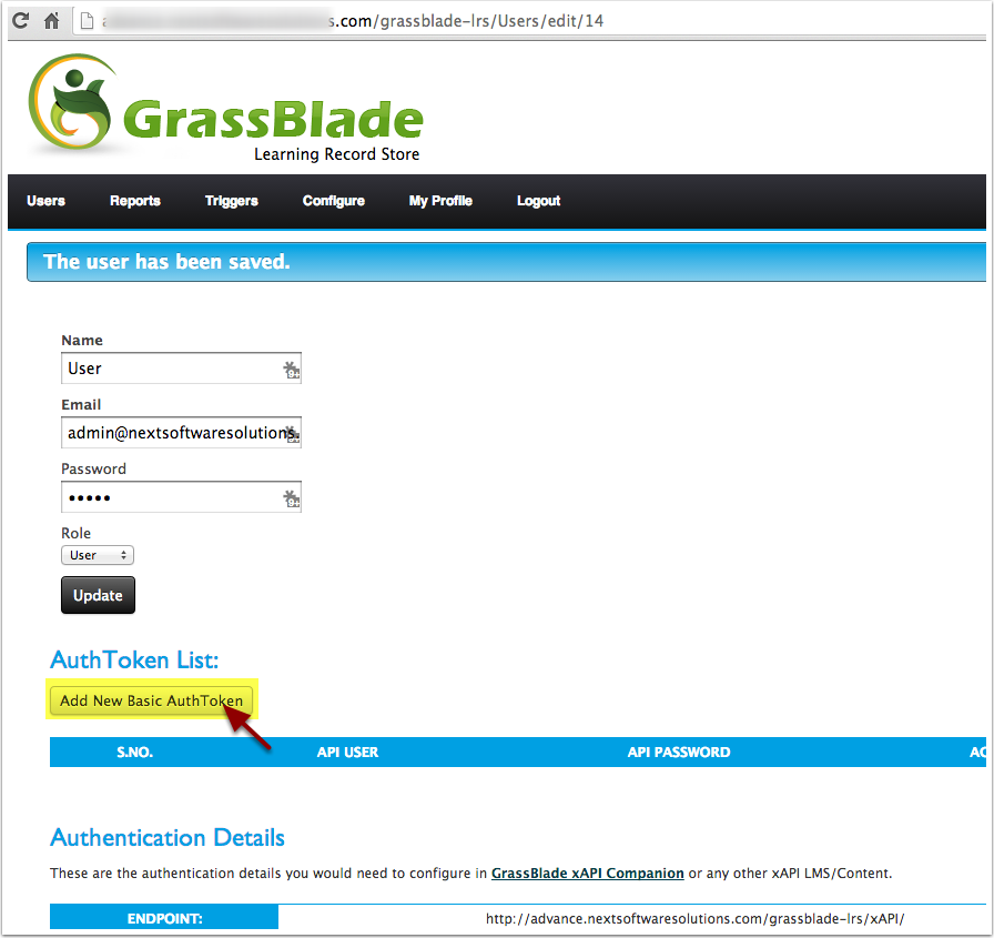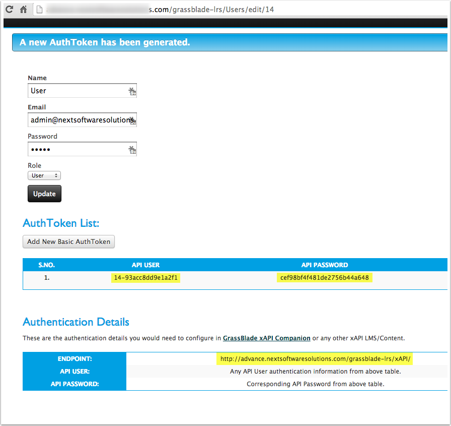 Copy the API User, API Password, and Endpoint URL and use it in your xAPI Program, LMS or Content. If you are using GrassBlade xAPI Companion for WordPress, you need to configure it in your GrassBlade Settings page on WordPress.
